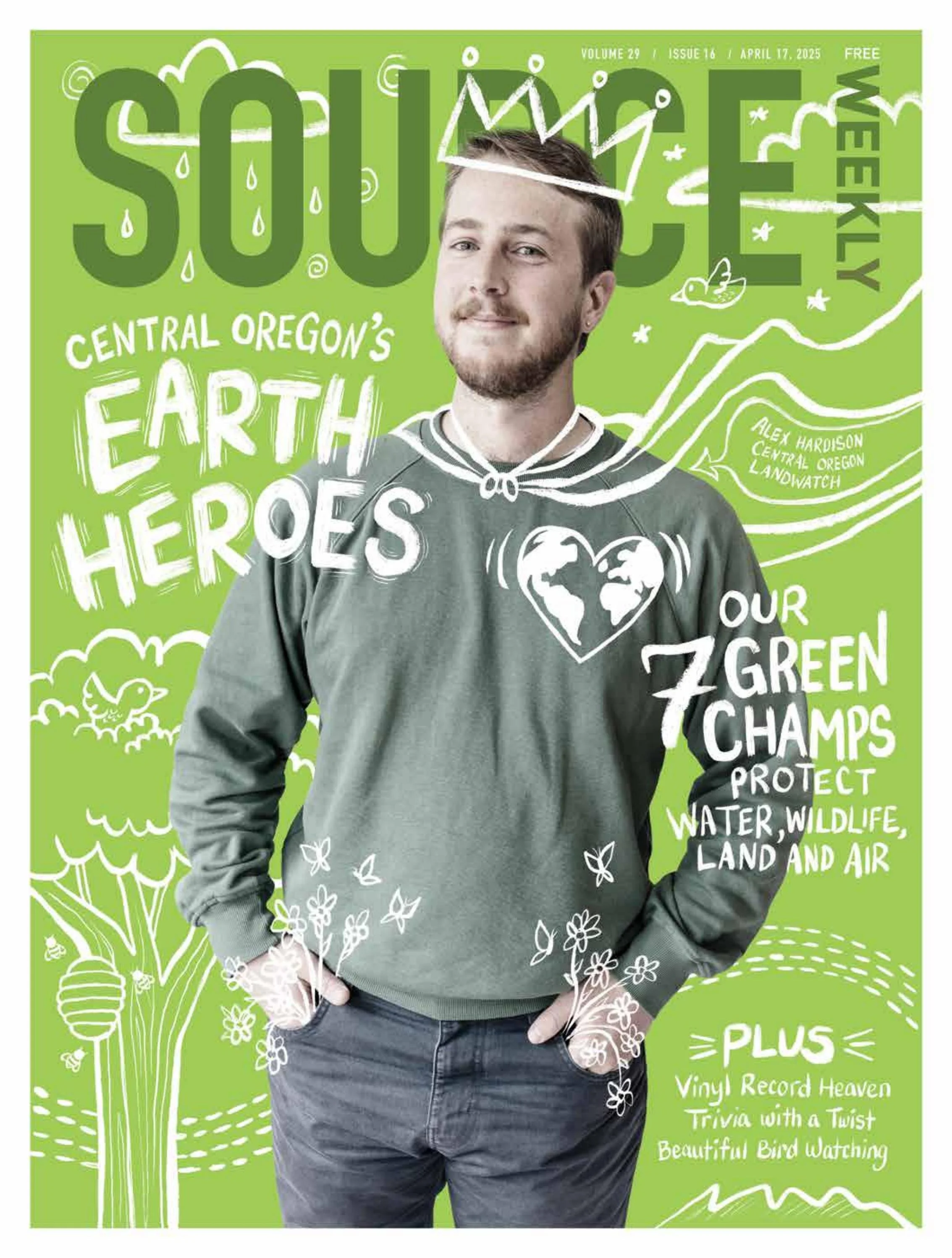 The wait is over, Bonnie. Communications Manager Alex Hardison made the front page of the Source Weekly in April as this year’s Earth Hero.